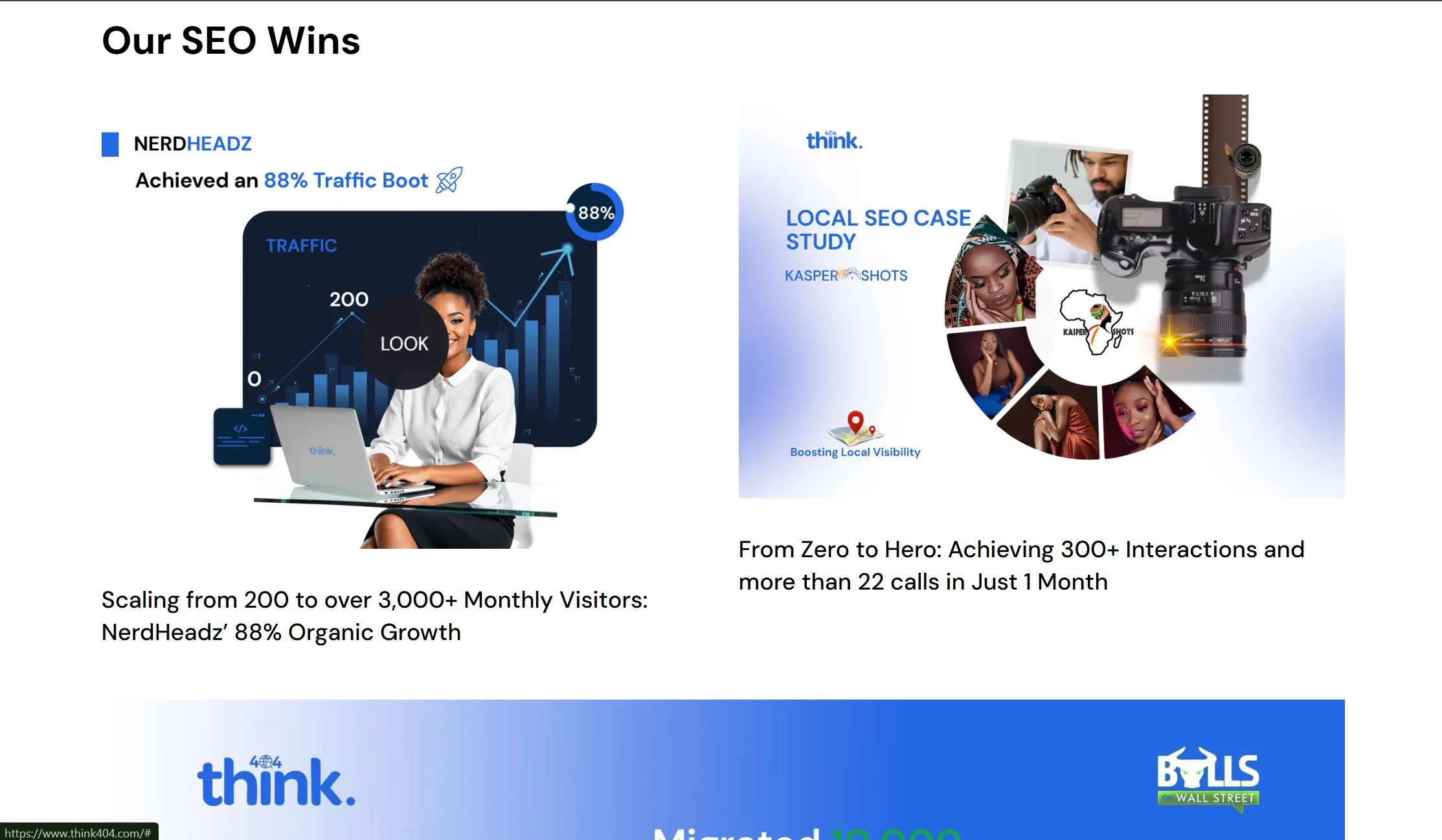Think404 began as a dedicated SEO agency, focusing solely on search engine optimization. Over time, we’ve evolved into a full-service creative digital marketing agency. Today, we proudly offer a comprehensive range of services: